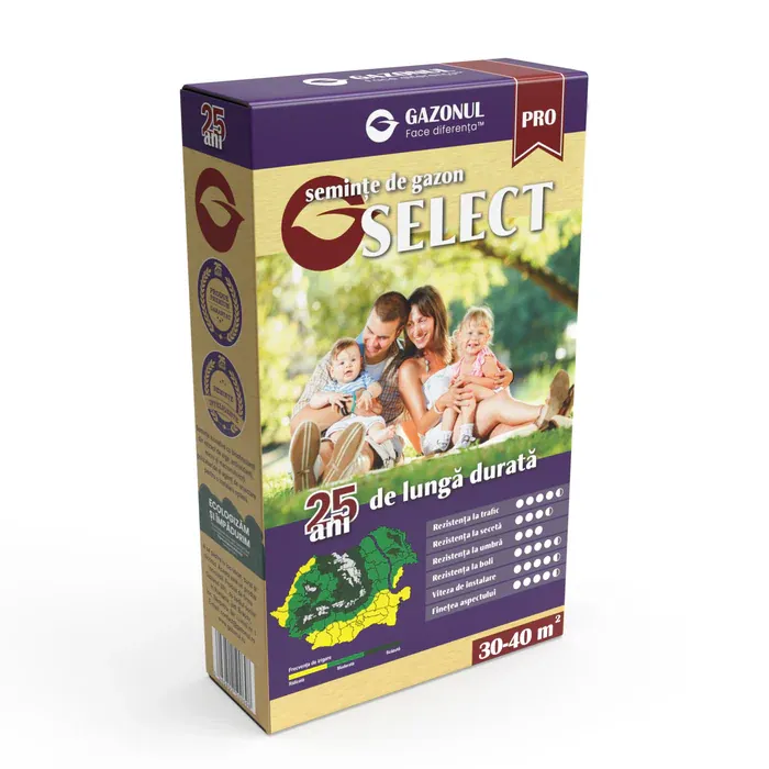 Gazonul obținut din semințele Select este robust și rezistent, fiind ideal pentru grădini rezidențiale, curți sau spații verzi unde se dorește un echilibru între estetică și durabilitate. Datorită texturii uniforme, peluza are un aspect natural și sănătos, care se menține pe termen lung.